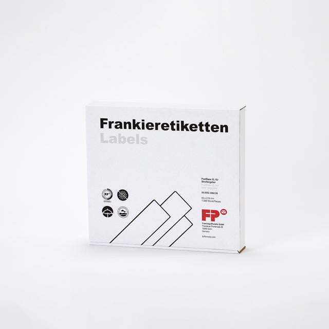 Päckchen, Pakete oder andere überformatige Briefe können Sie einfach mit unseren selbstklebenden Frankierettiketten auf unseren Frankiersystemen freimachen. Zugelassen von der DPAG.