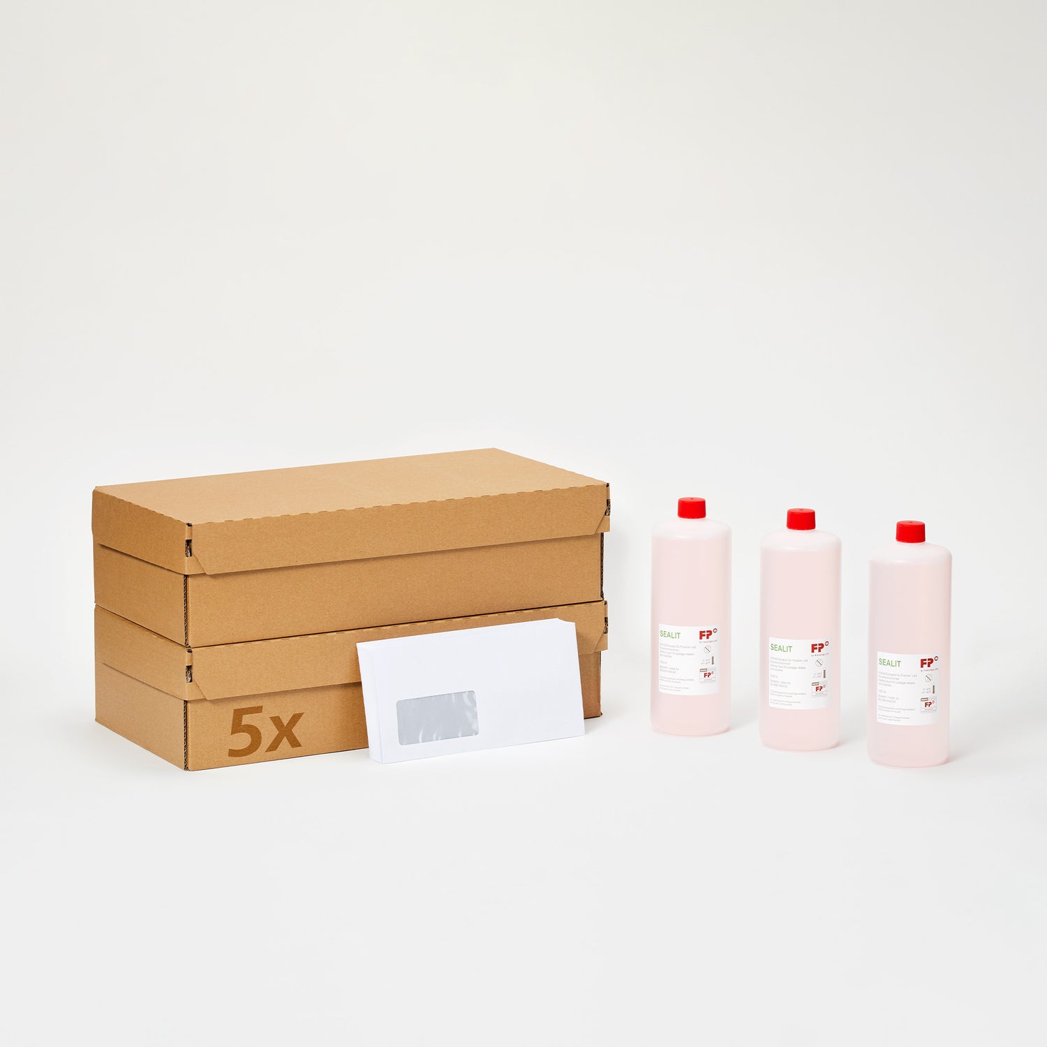 1 x FP-sealit patentierte Schließflüssigkeit 1.000 ml + 5 Packungen Briefumschläge à 1.000 Stück DIN C6/5 mit Fenster außenverleimt